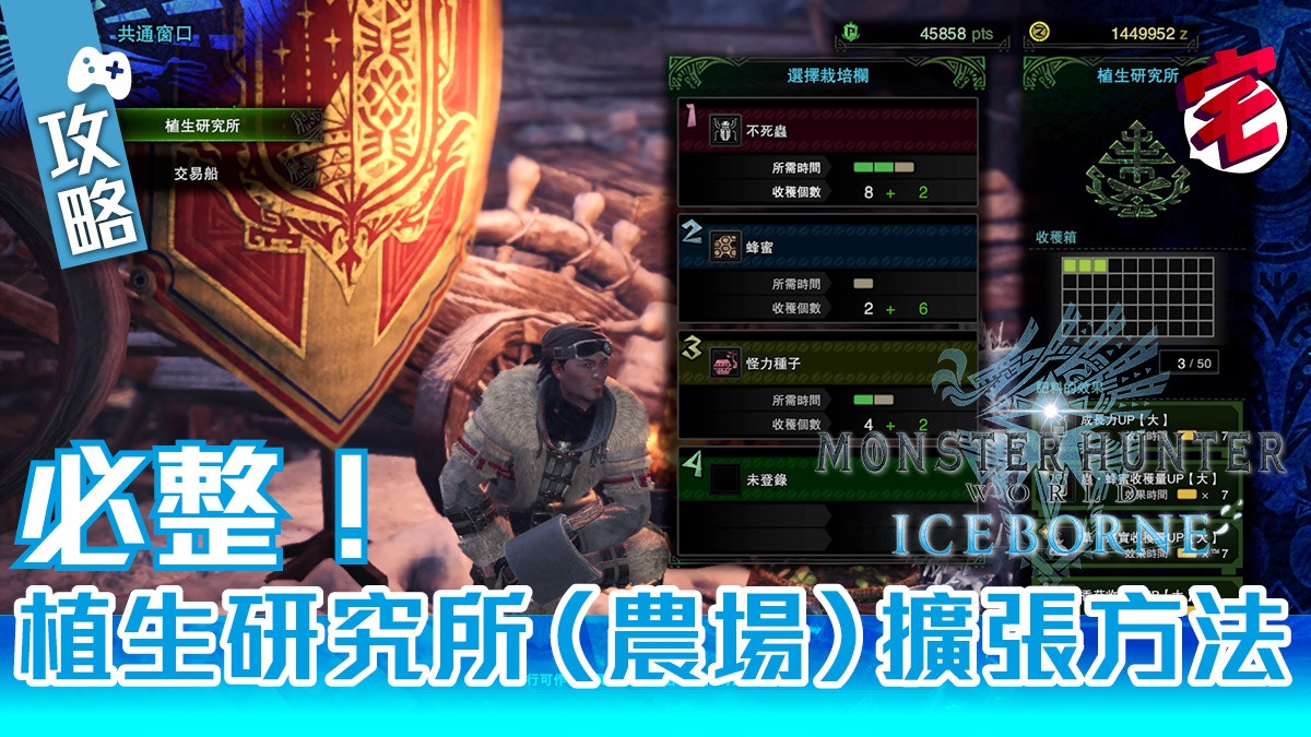 Mhw Iceborne攻略 必整植生研究所 農場 擴張多種一格素材